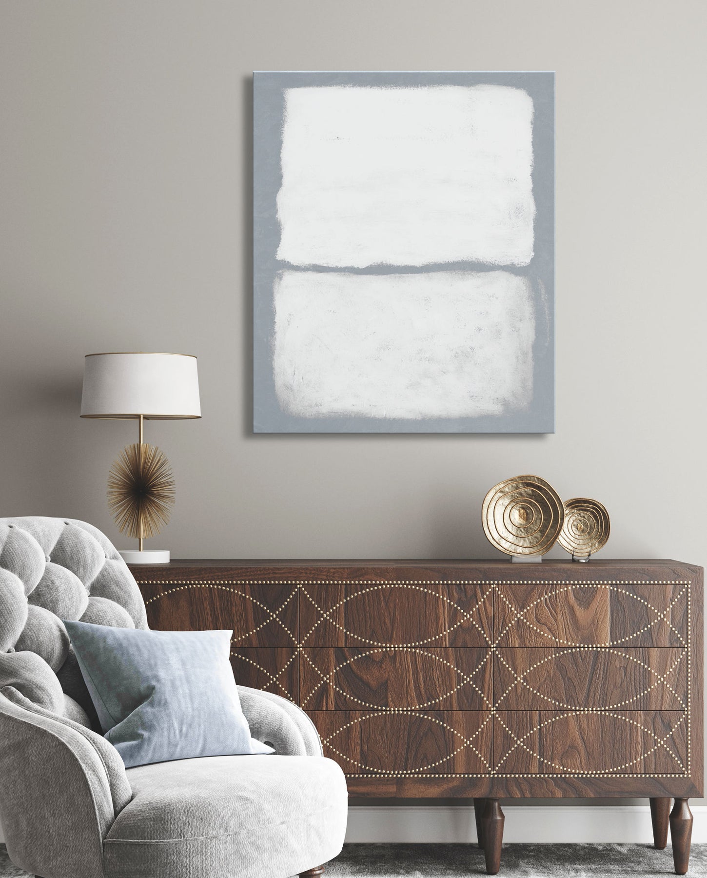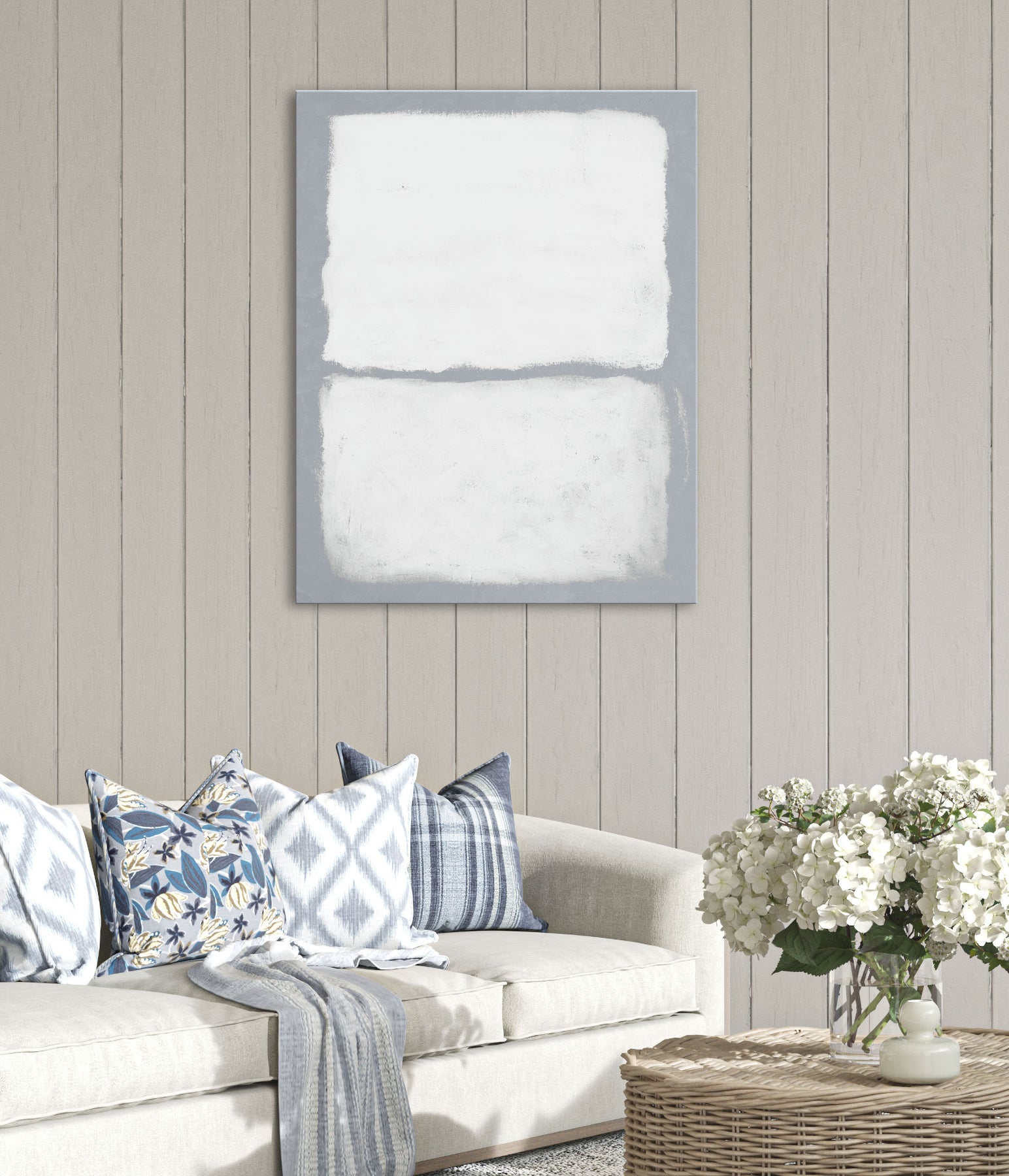• Stretched and gallery wrapped around a 1.5'' wooden stretcher. No outside frame.
